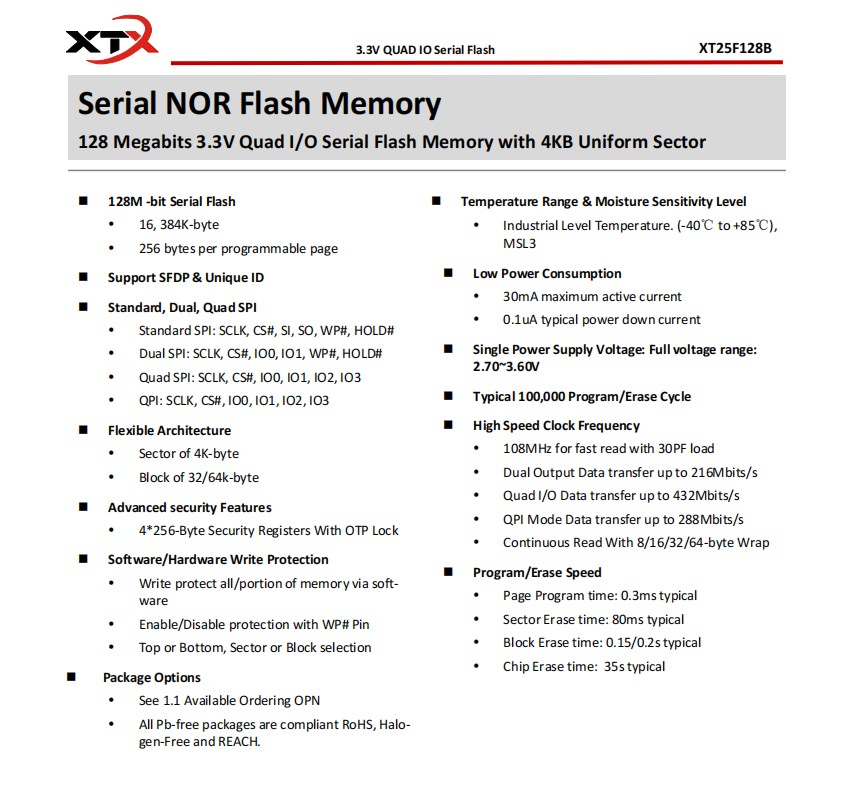 义嘉泰热卖型号 —— XT25F128B 128M 3.3V Quad IO Serial Flash