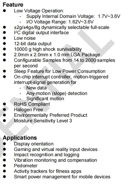 STK8BA53-A采用紧凑的2.0mm×2.0mm×1.0mm LGA 封装,体积小巧,非常适合空间受限的移动设备。同时低功耗设计,正常运行时电流仅约110μA,休眠模式更低至1μA,极大延长电池续航,让你的设备更持久。