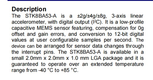 义嘉泰热卖型号——STK8BA53\-A数字三轴加速度传感器