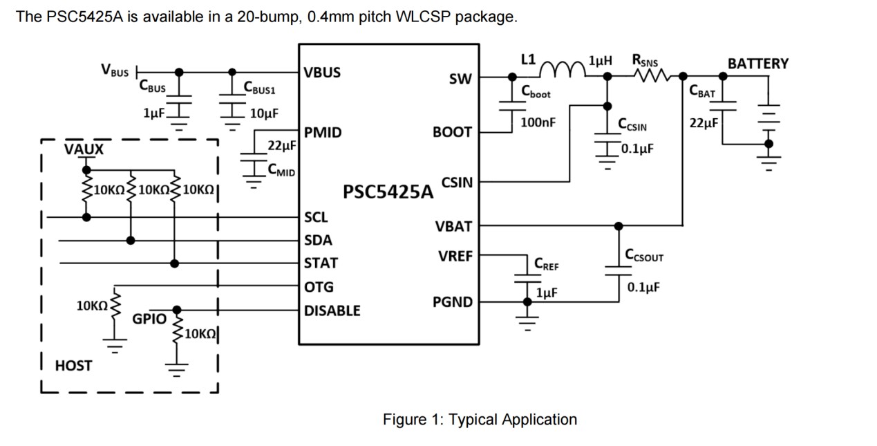 PSC5425A 将高效同步降压充电器与5 V、1.5 A 升压 OTG 稳压器合二为一,依托 I²C 智能配置,可在 USB2.0/USB3.x 的多种电流限制下,实现最快速度的单节锂电池充电,并在需要时为外设提供稳定 5 V 供电。
