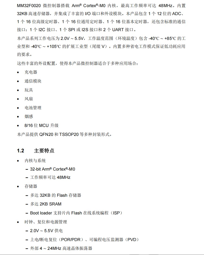 MM32F0020 微控制器!