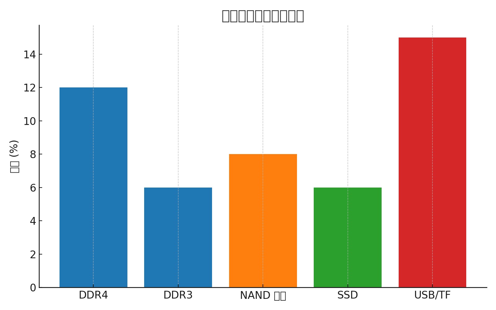 行情面:DRAM 与 NAND 合约价近期上涨 5–20%,其中 DDR4、企业级 SSD 与低容量 NAND 颗粒涨幅最为显著。